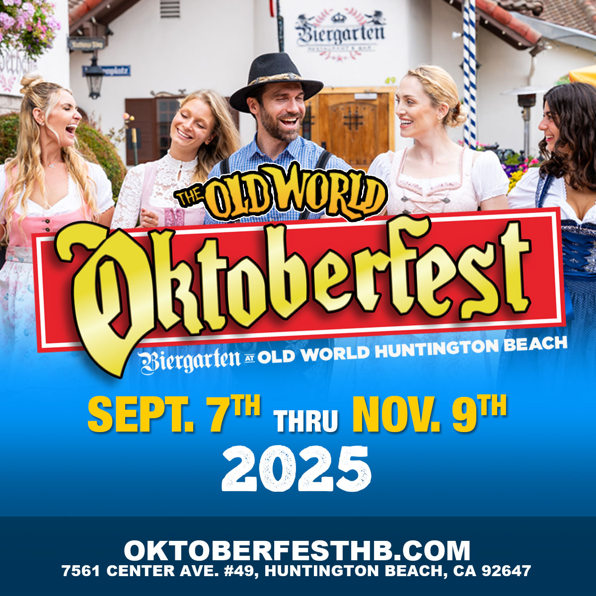 Join us at *Biergarten at Old World Huntington Beach*, located at 7561 Center Avenue in Huntington Beach. For more information, please visit OldWorldHB.com